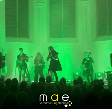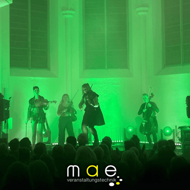 Das funktioniert, wie Eklipse am Sonntag den 02.11.2024 im Forum alte Kirche in Varel zeigten. So genossen am Samstagabend etwa 130 Zuhörende den etwas anderen Interpretationen bekannter Songs wie „Sweet Dreams“, „Good 4 u“ oder „Fallen Leaves“. Wir haben uns dabei um den passenden Ton sowie die Umsetzung eines Lichtkonzeptes, welches sich über die kompletten Räumlichkeiten der ehemaligen Kirche erstreckte, gekümmert.