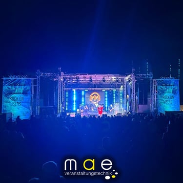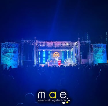 Auch im Jahre 2024 durften wir uns wieder um die veranstaltungstechnische Umsetzung des "Rock On Isens"- Festivals kümmern. Auf einer 8 Meter hohen und 10 Meter breiten Bühne haben wir an zwei Festivaltagen alles für einen reibungslosen Ablauf gegeben. Zum Einsatz kamen dabei 20 Hybridmovingheads, 28 LED-Bars sowie unser neues Audiocenter AVANDA® LineArray.
